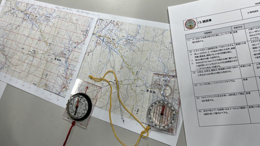 「こんなに地図やコンパスを使いこなせる人は、君たちの学校に何人いるかな?」の指導者の問いにスカウトたちは少しニッコリ、自身を持ってくれればうれしいです。